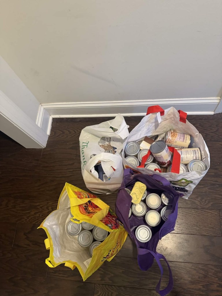 3/14/26- 1.5 months of collecting! Nearly 70 cans!1/24/26-Snowy day!11/22/25- Almost 120Lbs of canned goods… HappyThanksgiving! 8/24/25- Another Great Collection!34 canned items!Our first collection-8/18/25